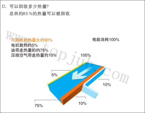 機(jī)械能和熱能,空壓機(jī)在工作時(shí)產(chǎn)生大量的余熱沒(méi)有利用。最后以風(fēng)冷或水冷的形式作為廢熱白白地排放到環(huán)境中(浪費(fèi)掉)。